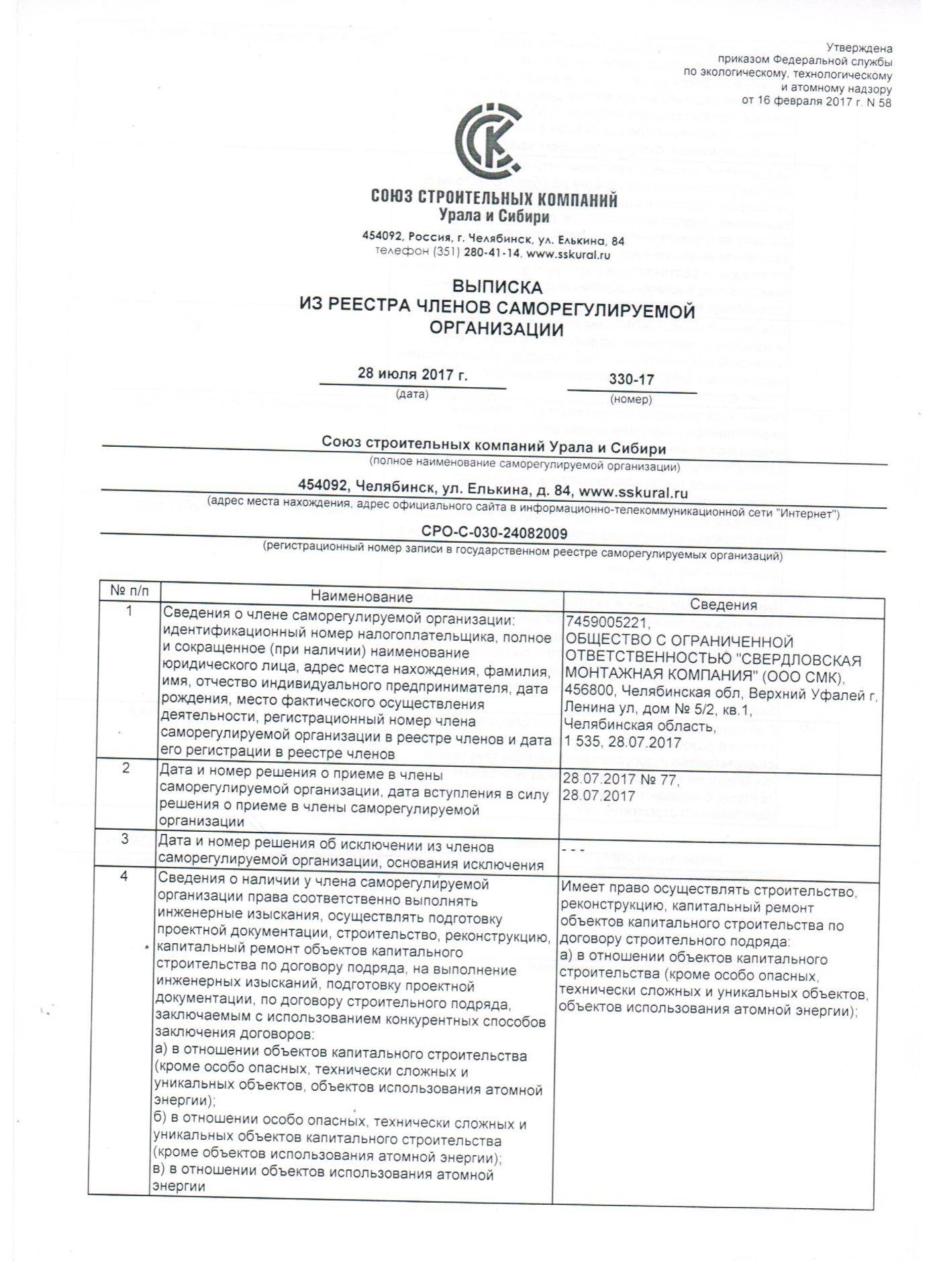 ООО "Свердловская монтажная компания", г.Екатеринбург, ул. Бажова 193, оф. 404